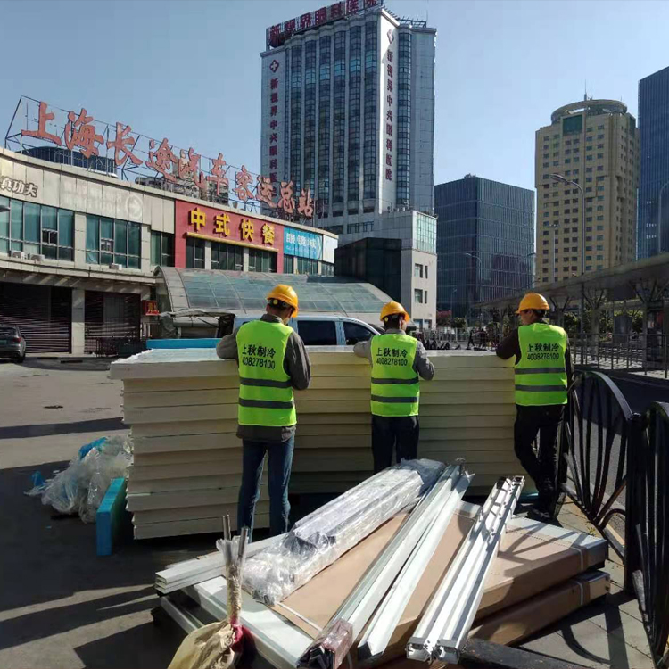 由于業(yè)主業(yè)務(wù)需求,采用常州月仙芯材B1級板組件拼裝,地面鋪設(shè)5.0mm防滑鋁板。項目采用艾默生谷輪渦旋風(fēng)冷一體機,恒溫庫配制冷制熱風(fēng)機,冷暖自控型物聯(lián)網(wǎng)電控箱。