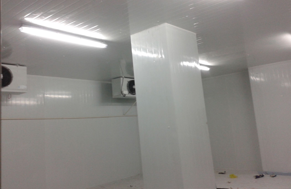 庫板厚一般采用100mm、雙面為涂塑彩鋼板,彩鋼板面加工成隱形槽,其重量輕,強度高、隔熱性能好, 耐腐蝕、抗老化,該庫板拼裝簡便快捷,是冷庫保溫庫體選擇的材料之一;